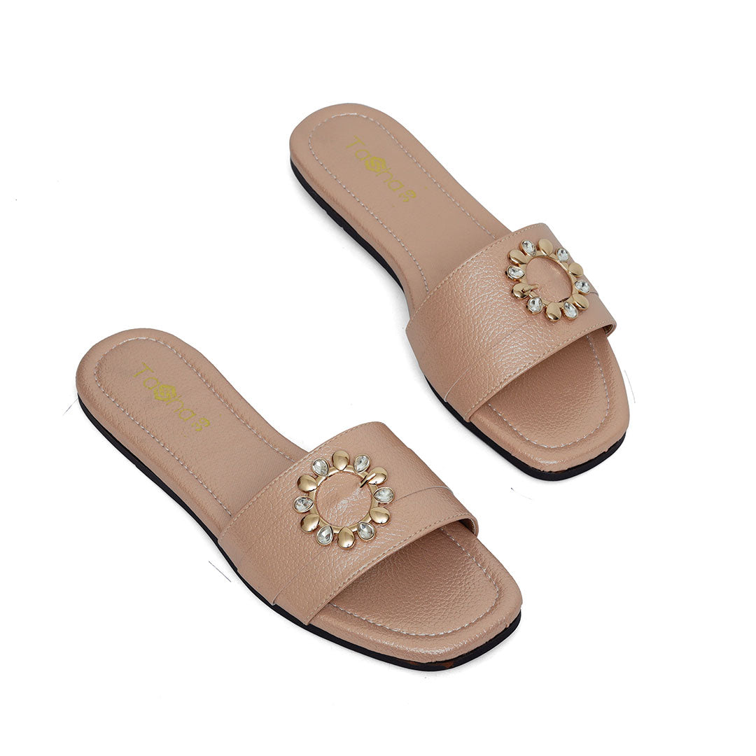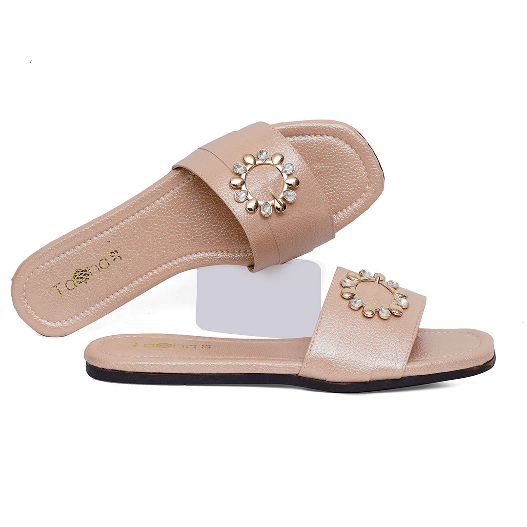 Step into effortless style with Florence Flats. Featuring a soft comfy finish, textured sole, and chic gold embellishment, these flats are perfect for elegant night out and all-day comfort.